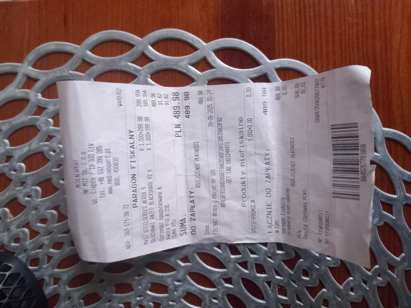 Myszka została zakupiona w czerwcu...